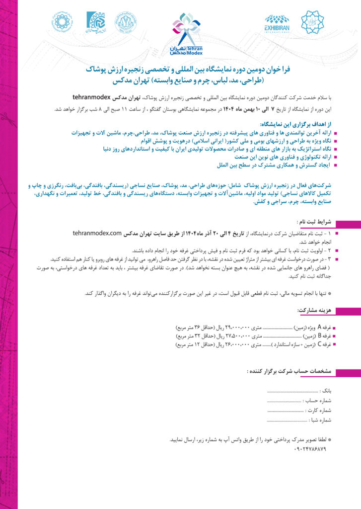 دومین دوره نمایشگاه بین المللی و تخصصی زنجیره ارزش پوشاک تهران مدکس
